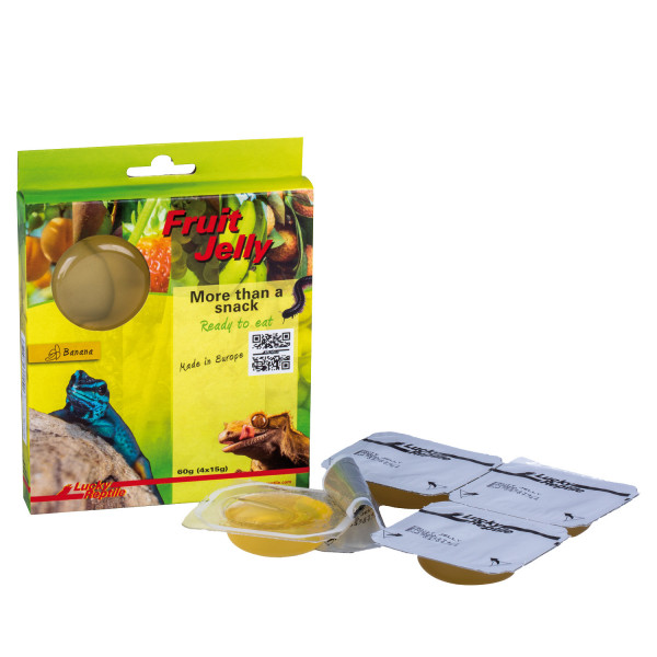 Fruit Jellies sind für Käfer, fruchtfressende Reptilien, wie z.B. Kronengeckos und Phelsumen, aber auch für viele Vögel ein kleiner, bunter Leckerbissen. Die Fruit Jellies von Lucky Reptile gehen hier einen neuen Weg und setzen natürliche Inhaltsstoffe in den Fokus. Statt einem Wasser-Zucker-Gemisch Vitamine künstlich hinzuzufügen, werden hier hochwertige Inhaltsstoffe wie echter Fruchtsaft (Konzentrat), Honig und Blütenpollen verwendet, die ganz natürlich bereits eine Fülle von Vitaminen, Mineralien, Aminosäuren, Duft- und Aromastoffen enthalten. Sogar auf künstliche Farbstoffe konnte (mit Ausnahme von Green Grape - Traube) verzichtet werden, da die natürlichen Inhaltsstoffe bereits zum anbeißen aussehen. All dies macht die Lucky Reptile Fruit Jellys nicht einfach nur zu einem Leckerbissen, sondern zu einer hochwertigen Ergänzung des Speiseplans fruchtfressender Tiere.
